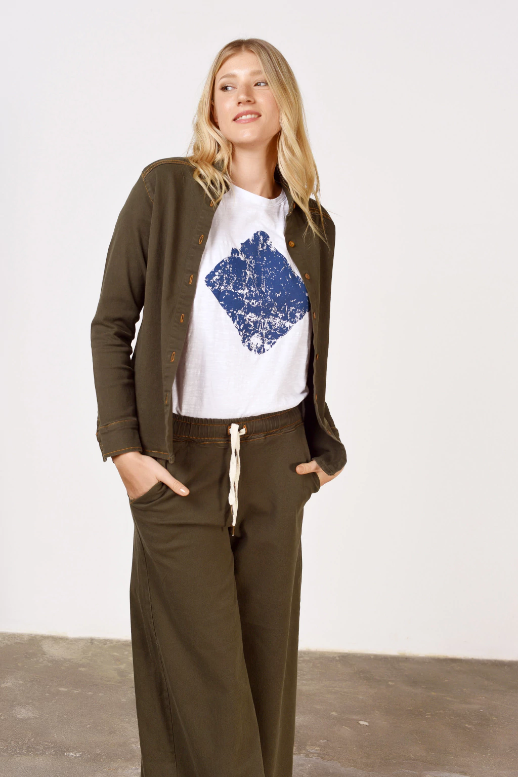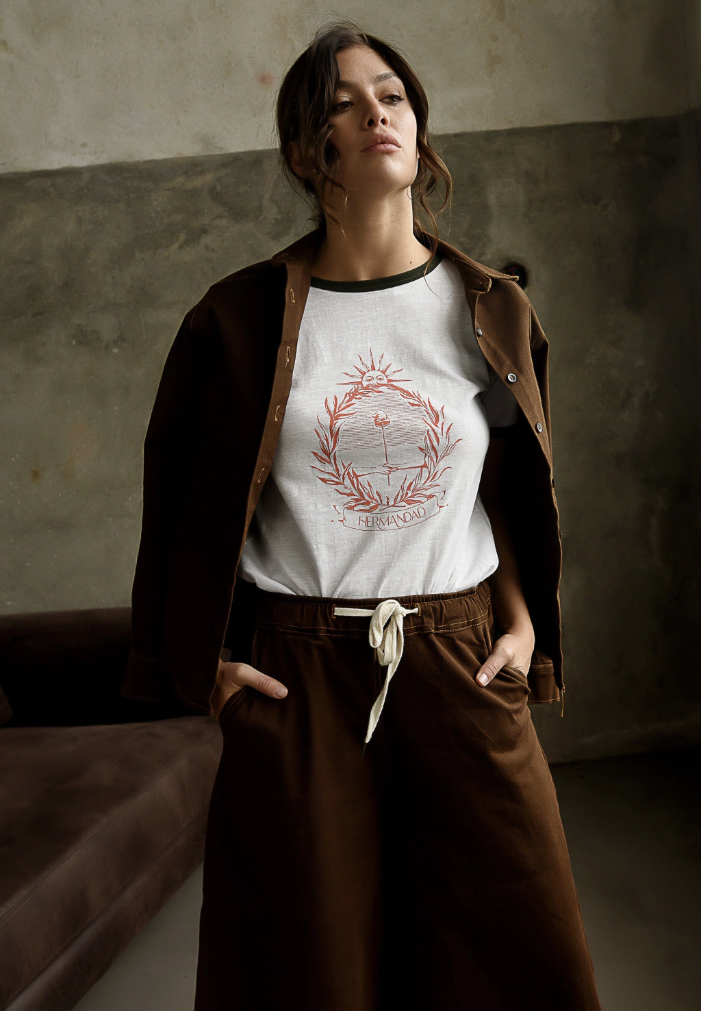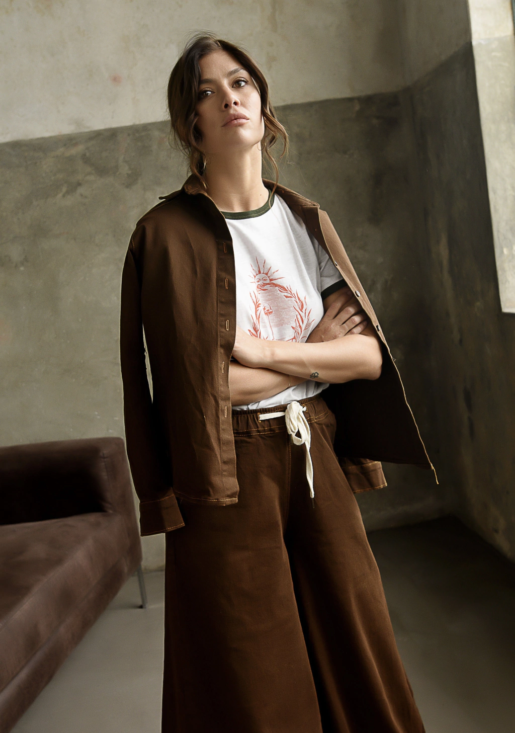 Camisa Pampa es una camisa realizada en gabardina elastizada, lavada, lo que genera que sea una prenda super cómoda. Su corte es entallado, con canesú delantero y trasero.
