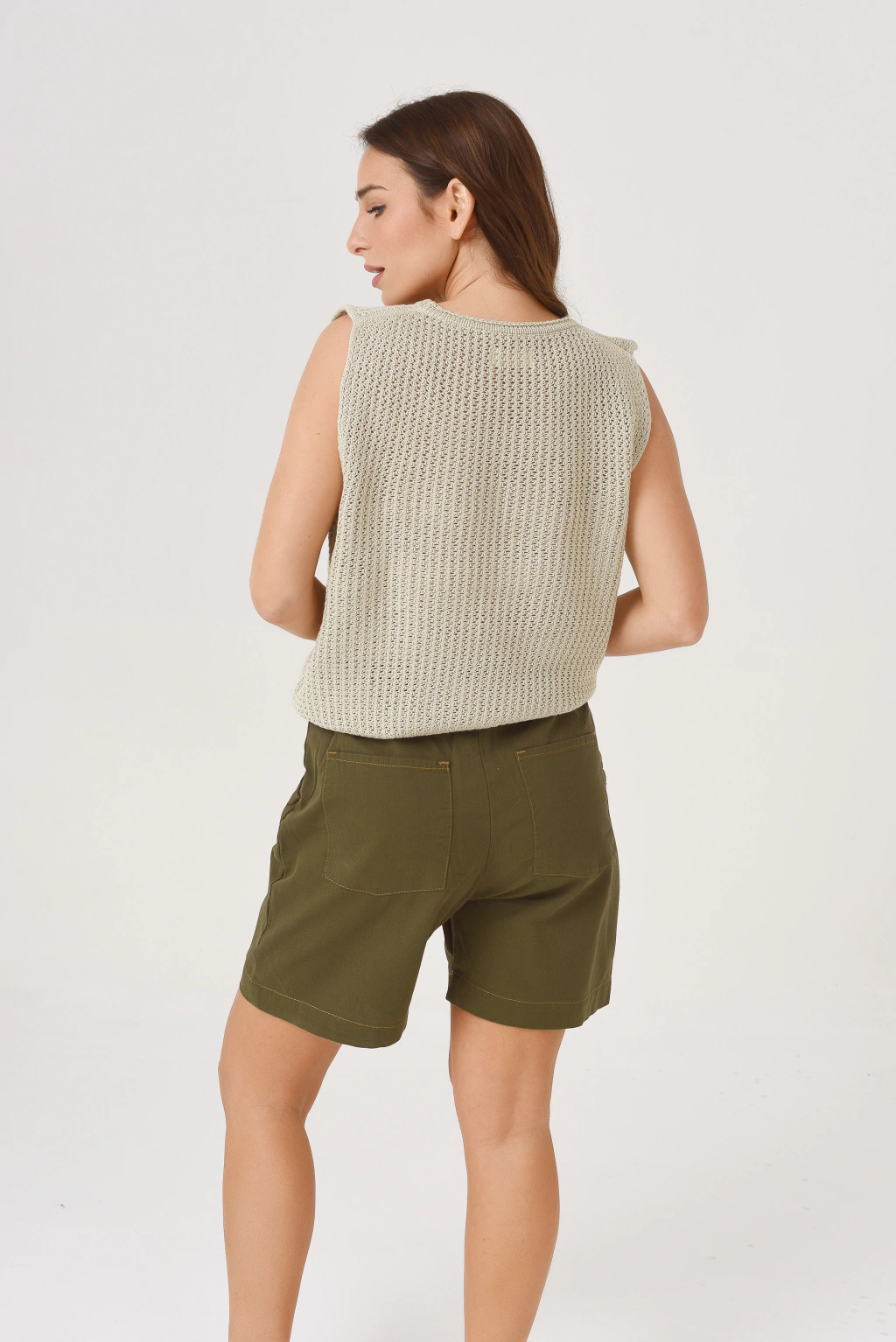 Bermuda gabardina 6oz con bolsillos delanteros y traseros.