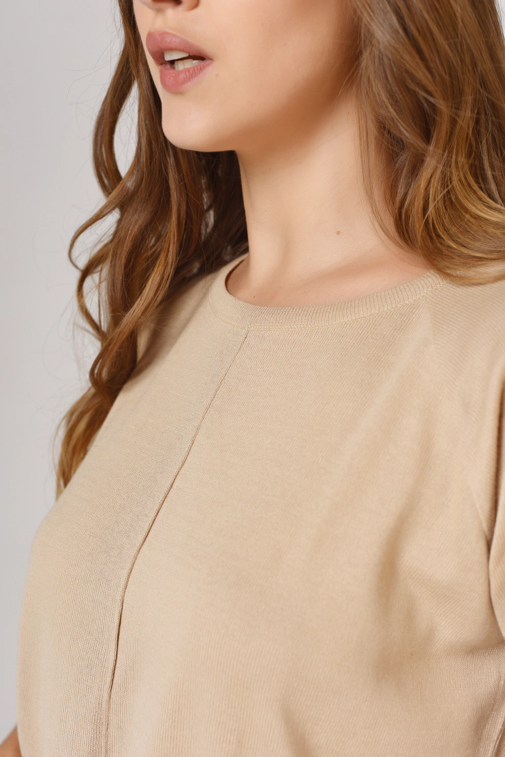 Sweater básico escote redondo, manga ranglan, confeccionado en algodón viscosa con alforza en centro delantero y trasero.